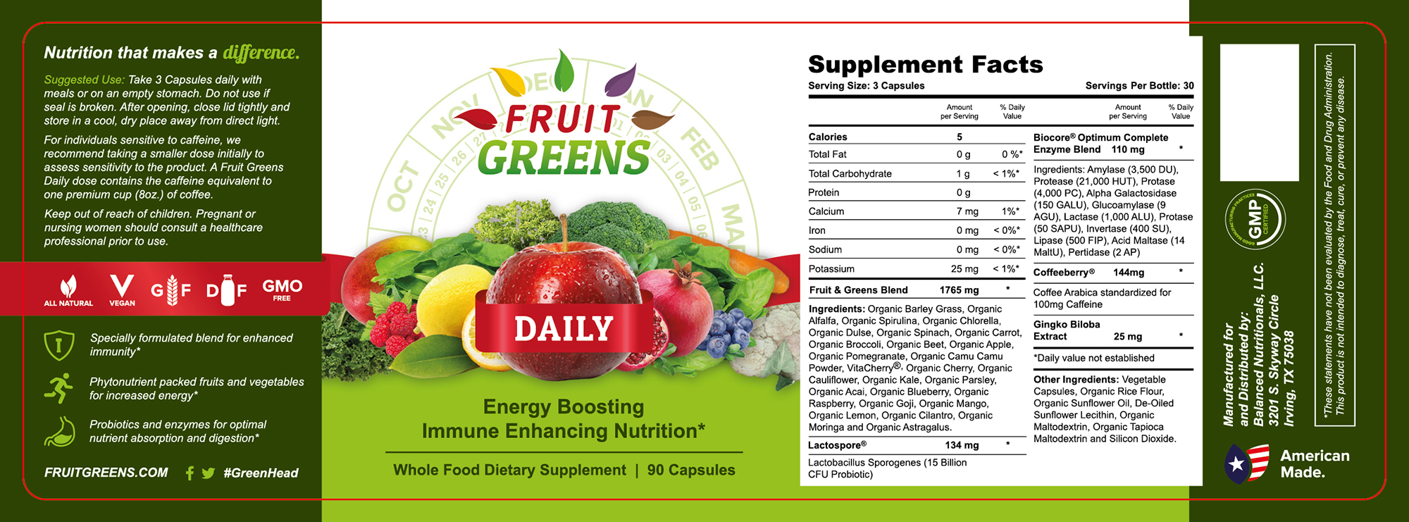 We recognize that most people don't eat enough fruits and vegetables and there is also a widespread issue of poor quality supplements. We created Fruit Greens Daily to be the solution.